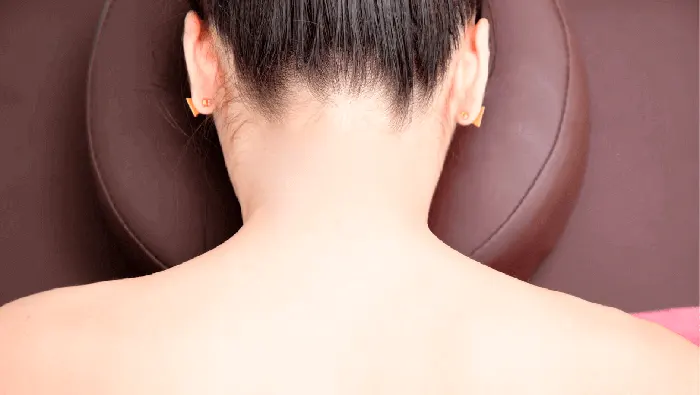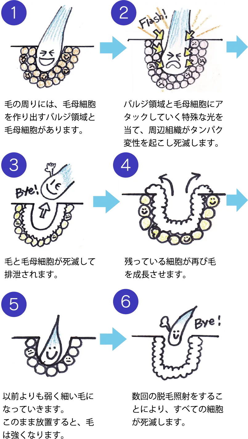 お手入れする部分へ1か所1か所丁寧に照射を行っていきます。ほとんど痛みを感じることなく処理が完了します。